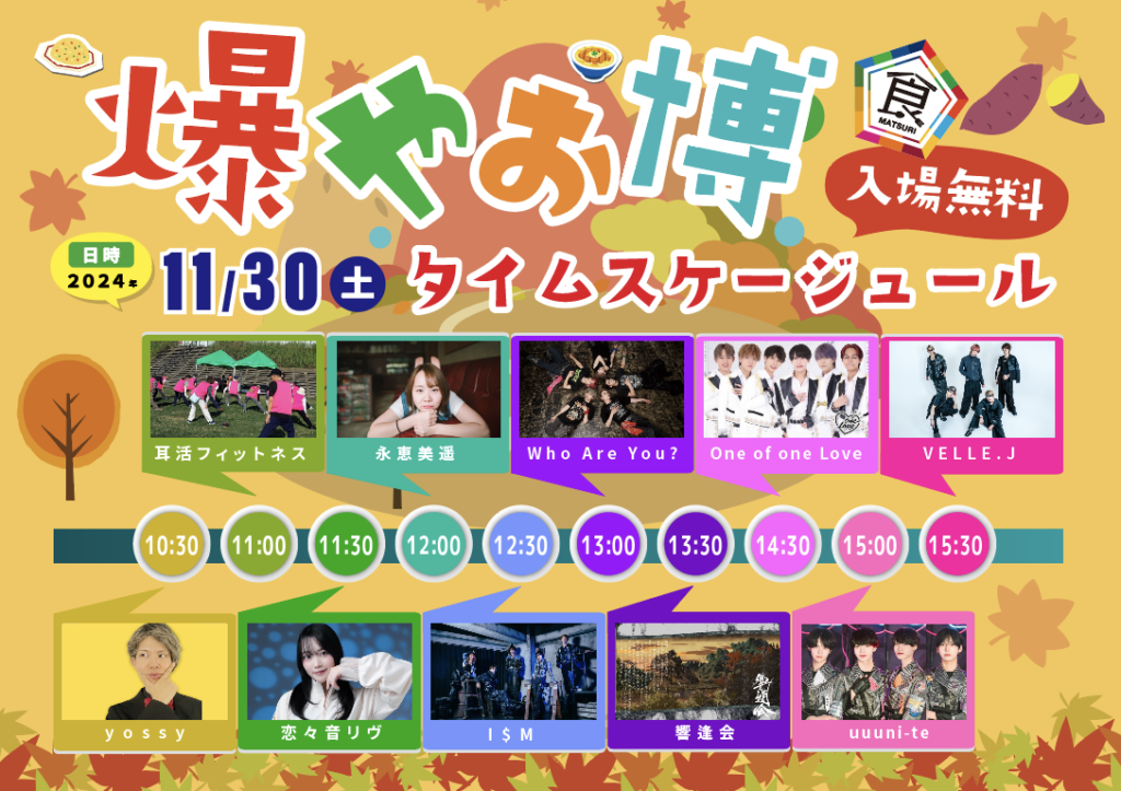 14:15~円形ステージ,16:30~メインステージで出演します!!